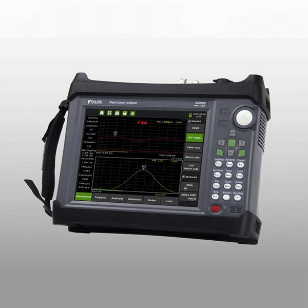 S5700 Series Field Comm Analyzer combines the highest performance operating specifications and multi-functional measurements such as cable and antenna system analysis, fiber inspection, spectrum analysis, cellular signal demodulation, interference analysis, signal coverage mapping and RF/optical power measurements in a single instrument.