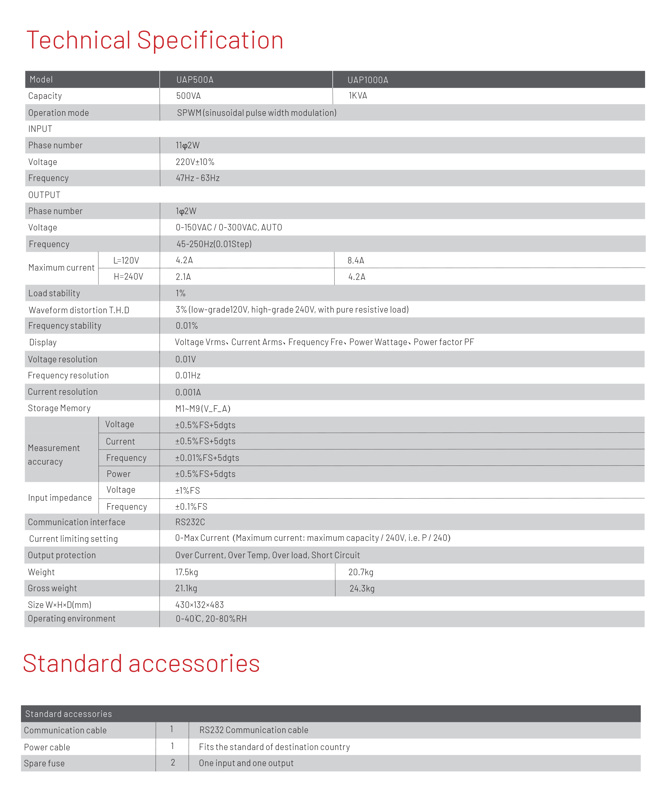 UAP 500A / UAP 1000A are AC sources. Provide low distortion sine wave output and measurement of power supply accuracy. Four windows LCD fully displays the measured data. Remote control can be completed via RS-232C. This series of power supplies can simulate normal and abnormal AC input conditions and measure the important electrical performance parameters of the object to be measured. It is applicable to electronic and motor industry, lighting, R & D, and quality inspection fields.