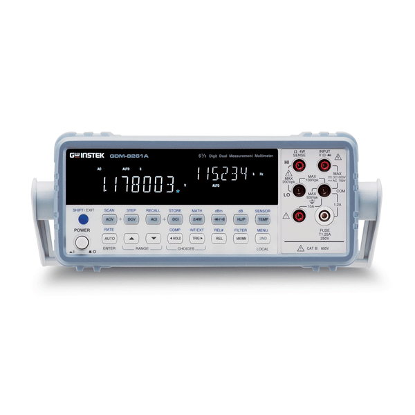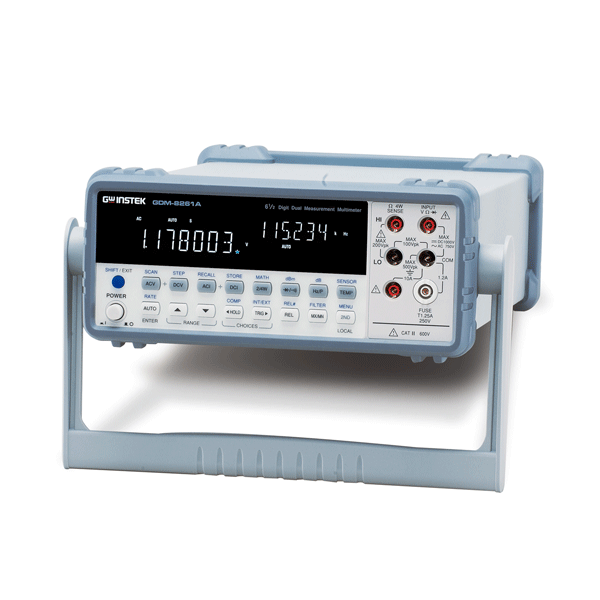 The GDM-8261A is a high precision 6 ½ digit Digital Multimeter with dual measurement displays, 11 measurement functions and 10 math functions at high accuracy (35ppm DC voltage accuracy) to accommodate the most frequently performed parameter measurements in various application fields today.