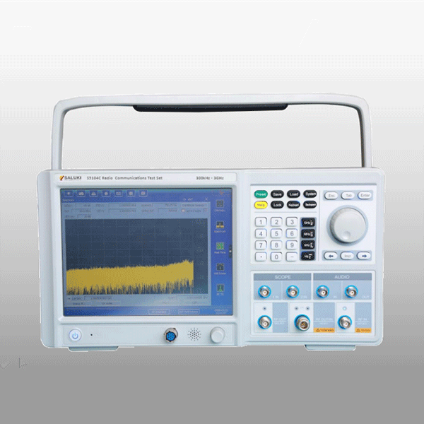 The Saluki S5104 Series Radio Communications Test Set, which is a multifunctional and portable model based on software radio architecture and integrates plentiful functions. Wide applications of the tester cover R&D, production, verification, maintenance and repair, and testing on radio communication equipment.